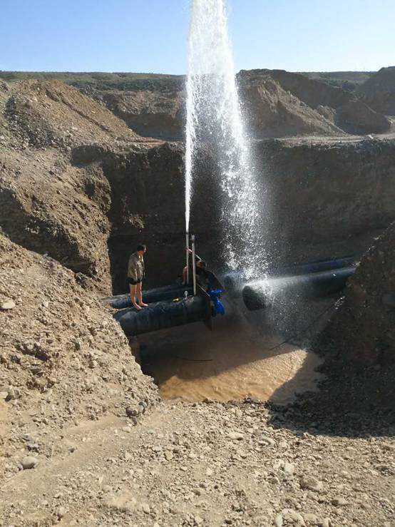 在工程局领导的关心与大力支持下,局各相关部门的积极配合下,经过全体职工坚持不懈的努力,目前工程主体施工全部完成,已完成产值5300万元,占合同额的86%。首部取水工程建设、51.16km管道安装、127座管线配套阀井7座大型消能建筑物、123套阀件、175套管件安装已施工完毕,实现了当地州、市政府要求的通水节点目标。根据政府统一部署,计划在6月5日进行管道试通水。
