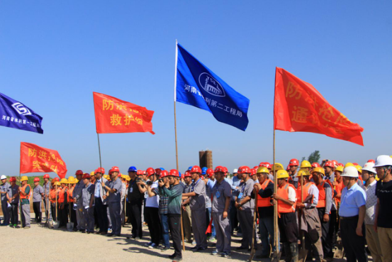 本次防汛抗旱演习,出山店水库1标项目部组织50余人及自卸汽车先后赶赴演练现场,在项目经理高建涛的指挥下,配合省建管局开展抗洪抢险演练。上午9点整防汛演练正式开始,经过各参建单位的共同配合努力,实战演练圆满结束。通过这次抗洪抢险演练,提高了我项目部员工的安全意识和在突发事件中敏捷反应和灵活处置的能力,也为确保出山店水库安全度汛奠定了坚实的基础。出山店水库2017年汛期度汛标准为50年一遇,坝前水位高程为85.48m。截至目前,我标段土坝已填筑至90m高程,已为安全度汛提前做好准备。