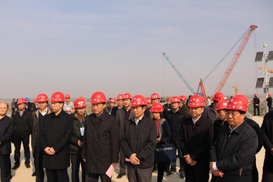 刘宁副部长王铁副省长一行在出山店水库施工现场听取汇报