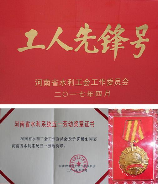 罗福生同志荣获全省水利系统“五一劳动奖章”、出山店项目部荣获“工人先锋号”荣誉称号