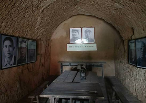 这里曾经是中共济源县委的早期办公所在地,简陋的窑洞就是当年的办公场所,窑洞的正面墙上悬挂毛主席与朱德总司令的画像,几张简陋的木桌子,几个长条木凳,马灯等简易物品,就是办公室。