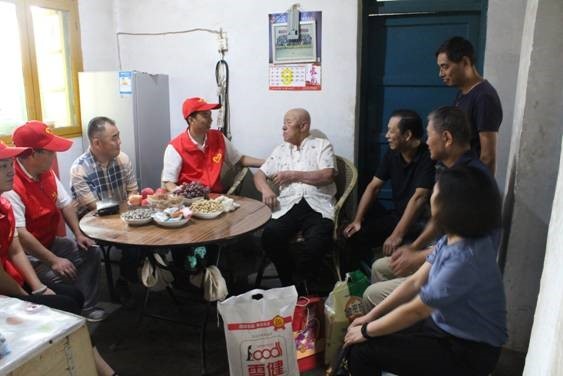 最后,大家来到省劳模梁庚喜家中,石主任与老人促膝交谈,详细询问他的身体状况和家庭情况,叮嘱他保重身体,安度晚年。随后石主任一行为老人送上慰问品,并祝福梁老度过一个欢乐祥和的中秋节,梁老对工会的看望和慰问表示由衷感谢。