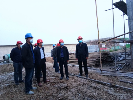 在赵集水厂项目,谌局长察看了厂区建设,结合水利局要求的通水目标,谌局长提出厂区建设需充分抓住有利施工天气,加快工程建设进度。