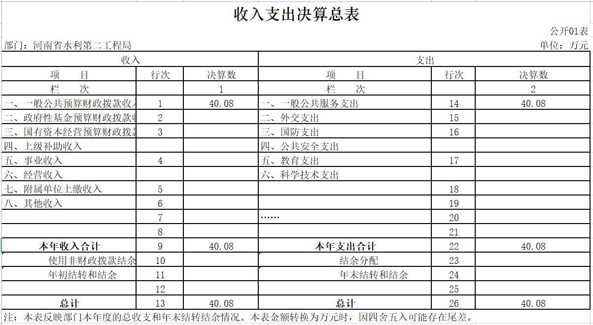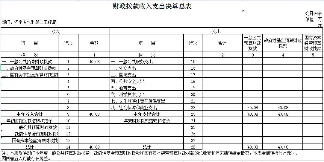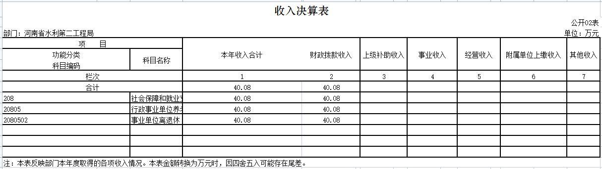河南省水利第二工程局部门决算