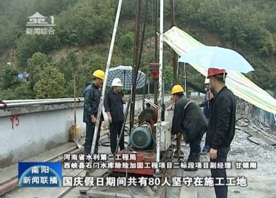 金风送爽,丹桂飘香,在这举国欢庆的日子里,河南省水利第二工程局西峡石门水库除险加固工程施工2标项目部,为了工程如期完成,全体人员不分昼夜,默默地坚守在自己的岗位上。