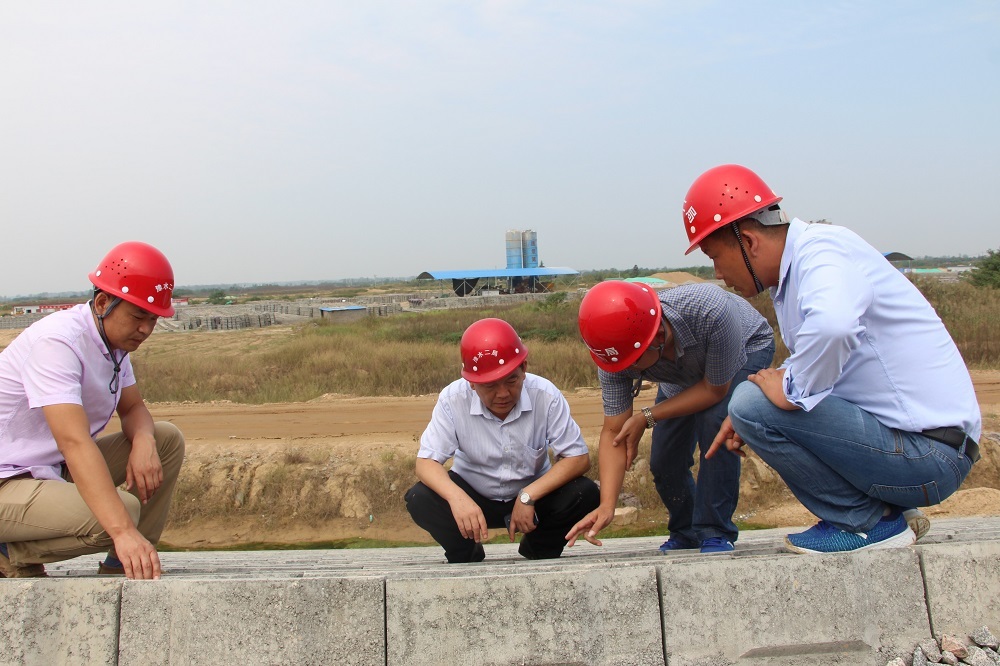张局长到项目后,直接赶往北灌溉洞,在高经理陪同下张局长踏着泥泞,来到灌溉洞洞身开挖现场,实地查看了灌溉洞施工进展情况及施工过程中存在的问题。在听取现场工作人员的汇报后,张局长叮嘱到:灌溉洞施工相较主坝段进度略显滞后,下一步一定要结合实际情况合理的安排施工工序,同时加强管理,尽快完成洞身开挖任务。随后,张局长又来到坝体填筑现场对坝面施工情况和已完成的上游坝坡预制块进行查看,在了解到目前我项目土坝填筑、预制块生产完成情况及下一步的施工安排等情况后,张局就我项目下一步工作安排提出了指导性的意见。