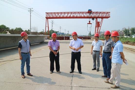 在项目班子成员的陪同下,符局长一行首先来到了箱梁预制现场,符局长一行对箱梁预制场质量情况进行了仔细查看,随后,符局长就桥梁作业队在箱梁预制的施工工艺、人员设备投入等方面又进行了详细询问,对项目部提出的“目前扬尘治理持续高压、土方工程暂停施工和弃渣场严重不足”等问题指出了解决方案。