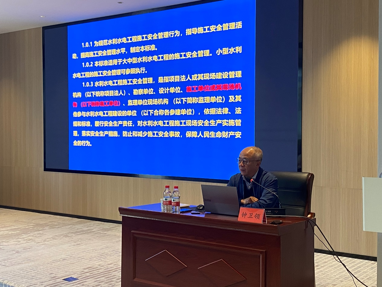 本次培训精心设计课程,钟卫领教授为参训人员讲授水利工程生产安全重大事故隐患清单指南重点解读及典型案例分析、水利安全生产风险管控“六项机制”建设、《水利水电工程施工安全管理导则》(SL721-2015)与征求意见稿等专题进行系统讲解。钟卫领教授运用真实的案例、深厚的专业造诣、丰富的实践经验,为参训学员讲授了一堂精彩纷呈,操作性和实用性都很强的专题辅导课,帮助参训学员进一步掌握水利工程建设项目生产安全重大事故隐患及“六项机制”建设落地见效的具体内涵和重点要求,夯实了理论和思想基础,提高了参训人员安全生产管理水平和技术能力。