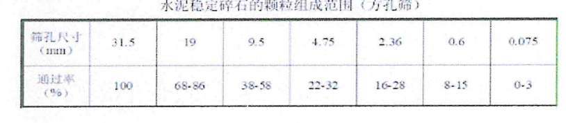 3标段:采用厂拌法集中拌合,参考水泥剂量5%,水泥稳定碎石7d无侧限抗压强度要求达到3-4Mpa。碎石的颗粒组成如下: