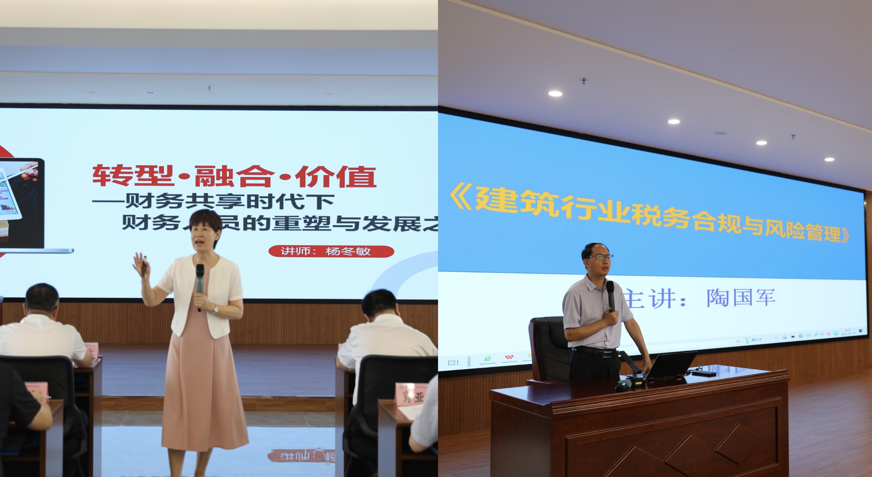 此次培训邀请行业专家杨冬梅老师讲授《转型·融合·价值——财务共享时代下财务人员的重塑与发展之道》,杨老师紧密结合建筑业特点,系统剖析财务共享中心建设、业财一体化实施及财务综合能力培养,为参训人员提供了前沿理念与实践指导。税务专家陶国军老师聚焦行业痛点,讲授了《建筑行业税务合规风险防控与稽查应对》,解析“营改增”政策影响及金税四期监管下EPC项目计税、异地施工预缴、甲供材处理等场景合规方案与稽查应对技巧,现场解答难题十余项。